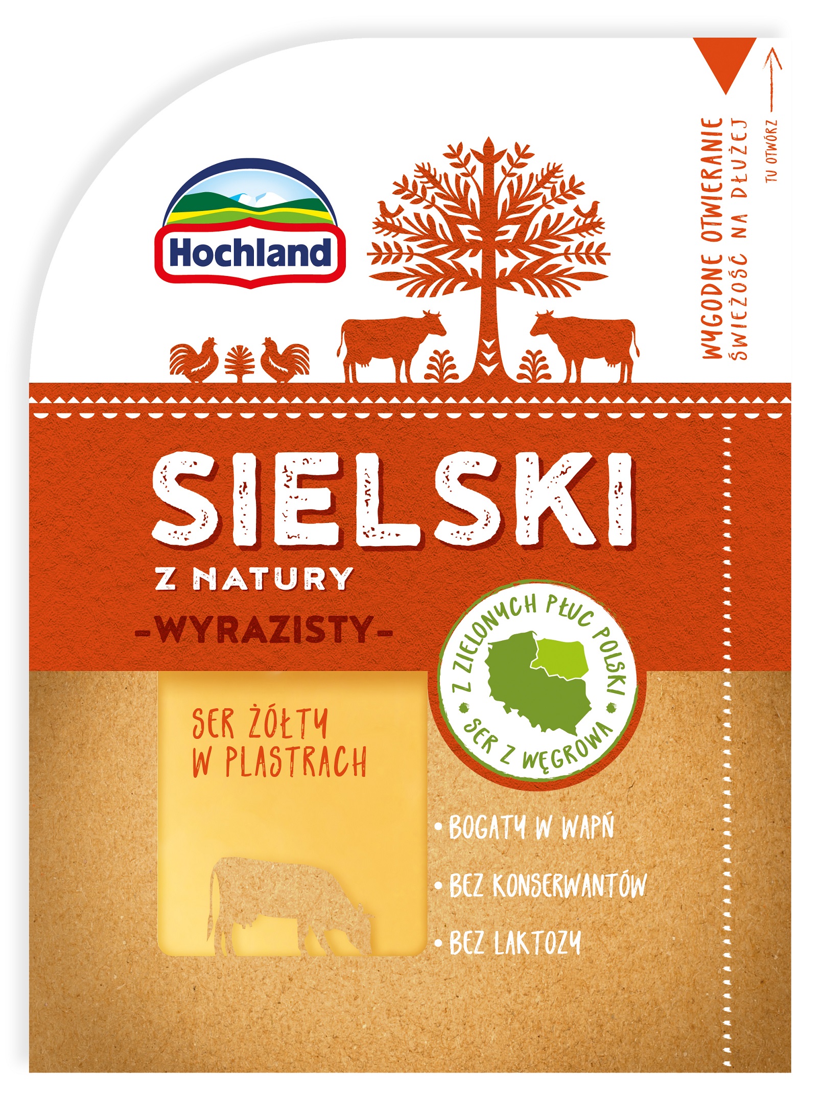 W jednym z najczystszych rejonów Polski zwanym Zielonymi Płucami Polski powstaje wyjątkowy ser żółte Hochland Sielski! W polskich, rodzinnych gospodarstwach krowy dają wysokiej jakości mleko, które jest jego pyszną podstawą. Nowość Hochland wyróżnia nie tylko pochodzenie, wyśmienity smak, lecz także jedyne na rynku zamknięcie na funkcjonalny rzep, dzięki któremu pyszny ser na dłużej zachowuje świeżość. Przyjazne środowisku opakowanie można wykorzystać później także do innych celów! Nowa linia serów żółtych Hochland z Zielonych Płuc Polski to najdoskonalsze połączenie pysznego smaku z wygodą i filozofią zero waste. Prosto, pysznie, wygodnie, a przy tym nowocześnie i z troską o środowisko naturalne! Bo kiedy my jesteśmy dobrzy dla natury, natura jest dobra dla nas – wyśmienite sery Hochland Sielski są tego najlepszym dowodem.