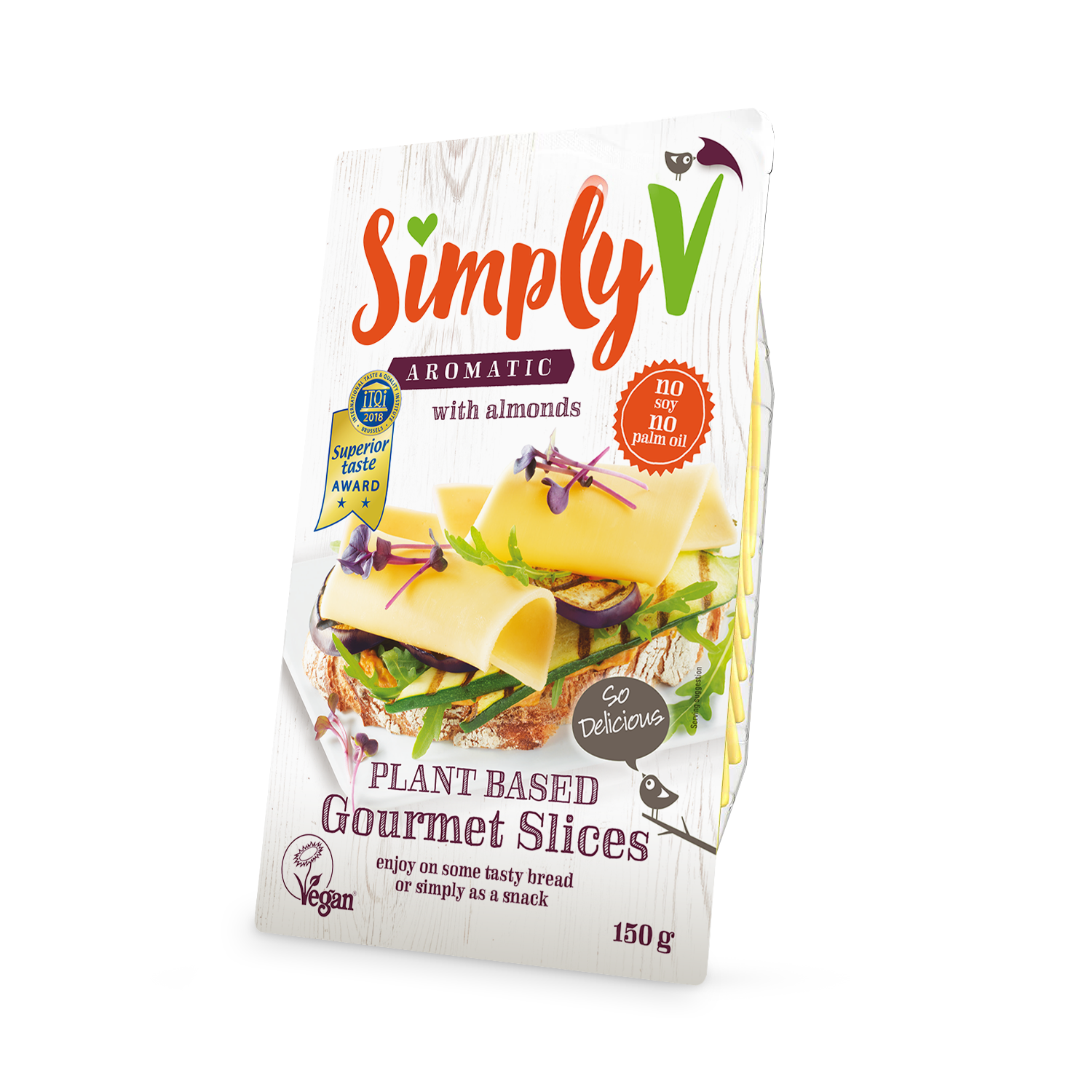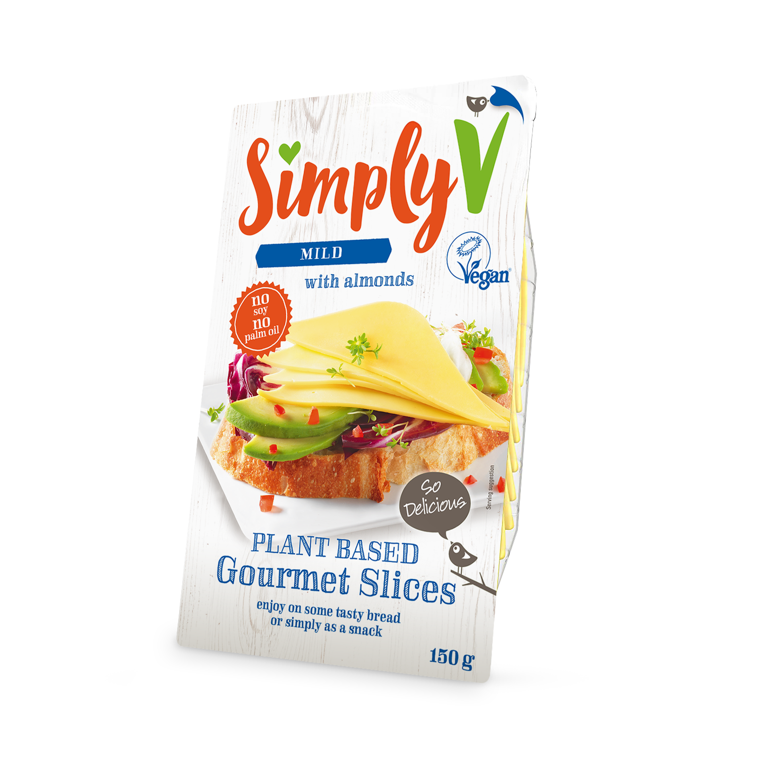 Plastry na bazie migdałów o wyrazistym smaku i Plastry na bazie migdałów o łagodnym smaku SimplyV – świetne na kanapkę, tosty lub do kreatywnego wykorzystania w daniach na ciepło. Idealnie się topią i cudownie ciągną, niczym tradycyjny ser.