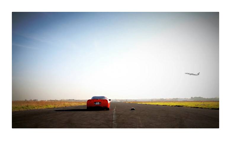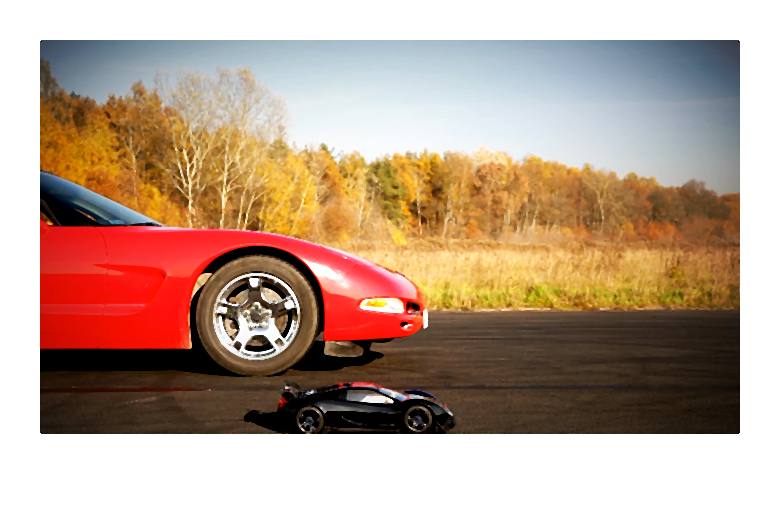 Już na samym starcie wydawałoby się, że model sterowany radiem – wprawdzie jeden z najszybszych na świecie ale jednak model – nie ma szans z podrasowanym Chevroletem Corvette C5. Samochód ten posiada bowiem silnik LS1 V8 o pojemności 5665 cmÂł i mocy 345 KM, a dzięki licznym modyfikacjom układu wydechowego, dolotowego oraz obniżeniu wagi, może osiągnąć maksymalną prędkość 300 km/h.